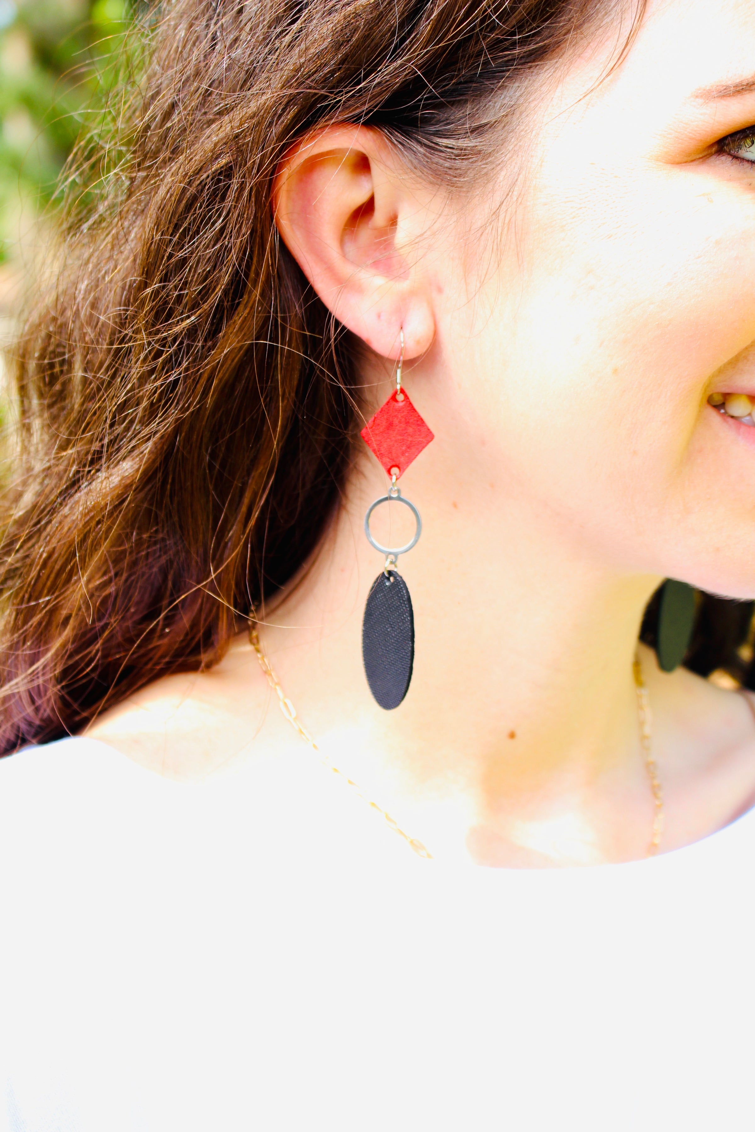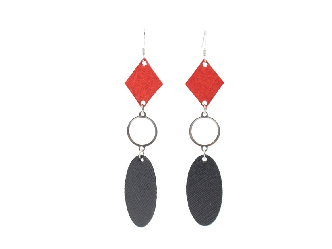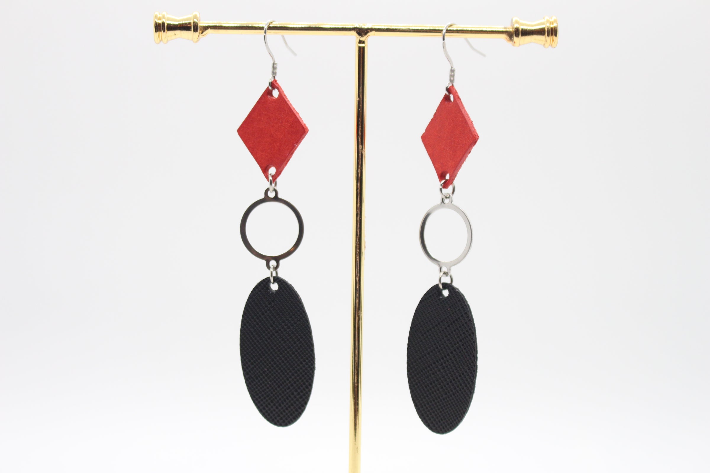 Made with our Lipstick Red leather and our LBD leather and surgical steel hardware.